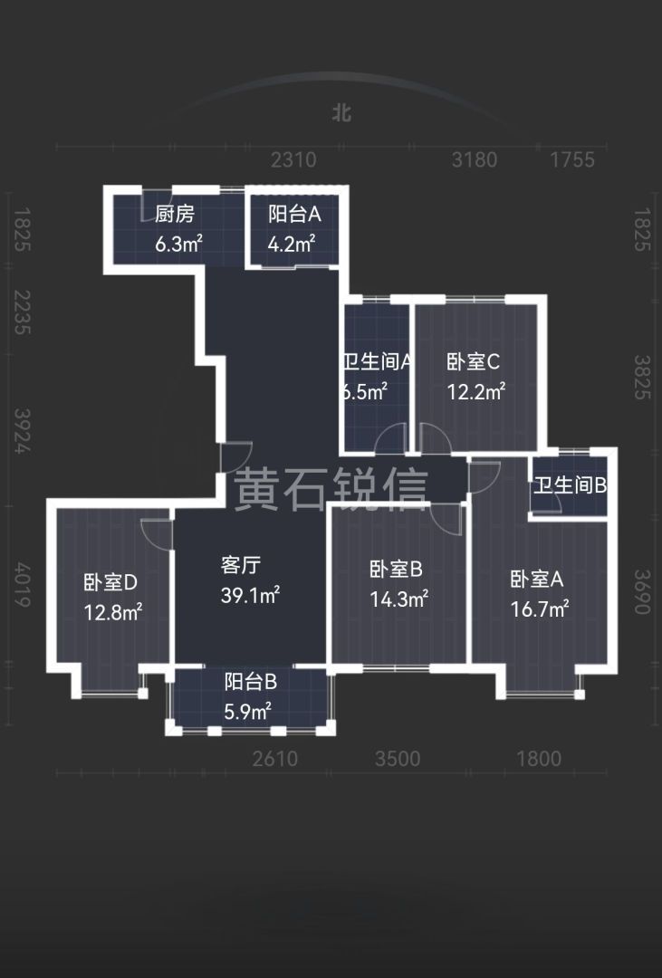 4室2厅2卫1厨168㎡南北