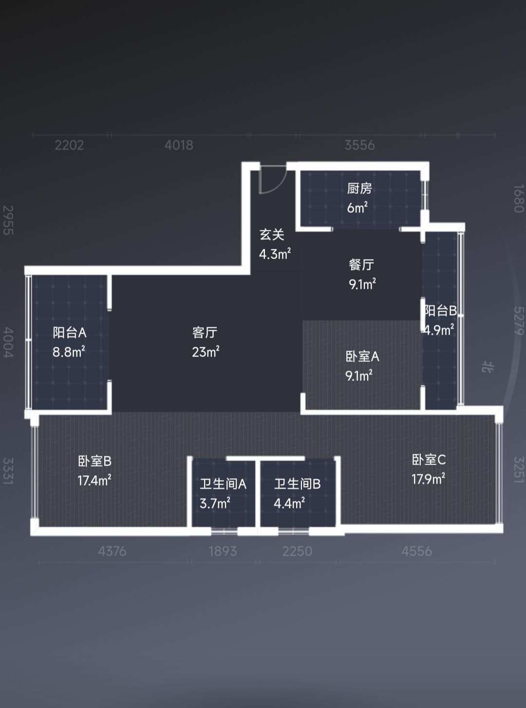 房屋户型3室2厅1厨2卫