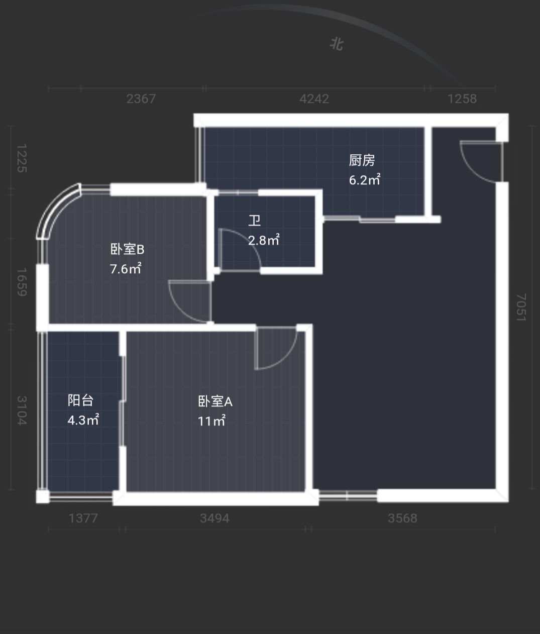 面积76m²